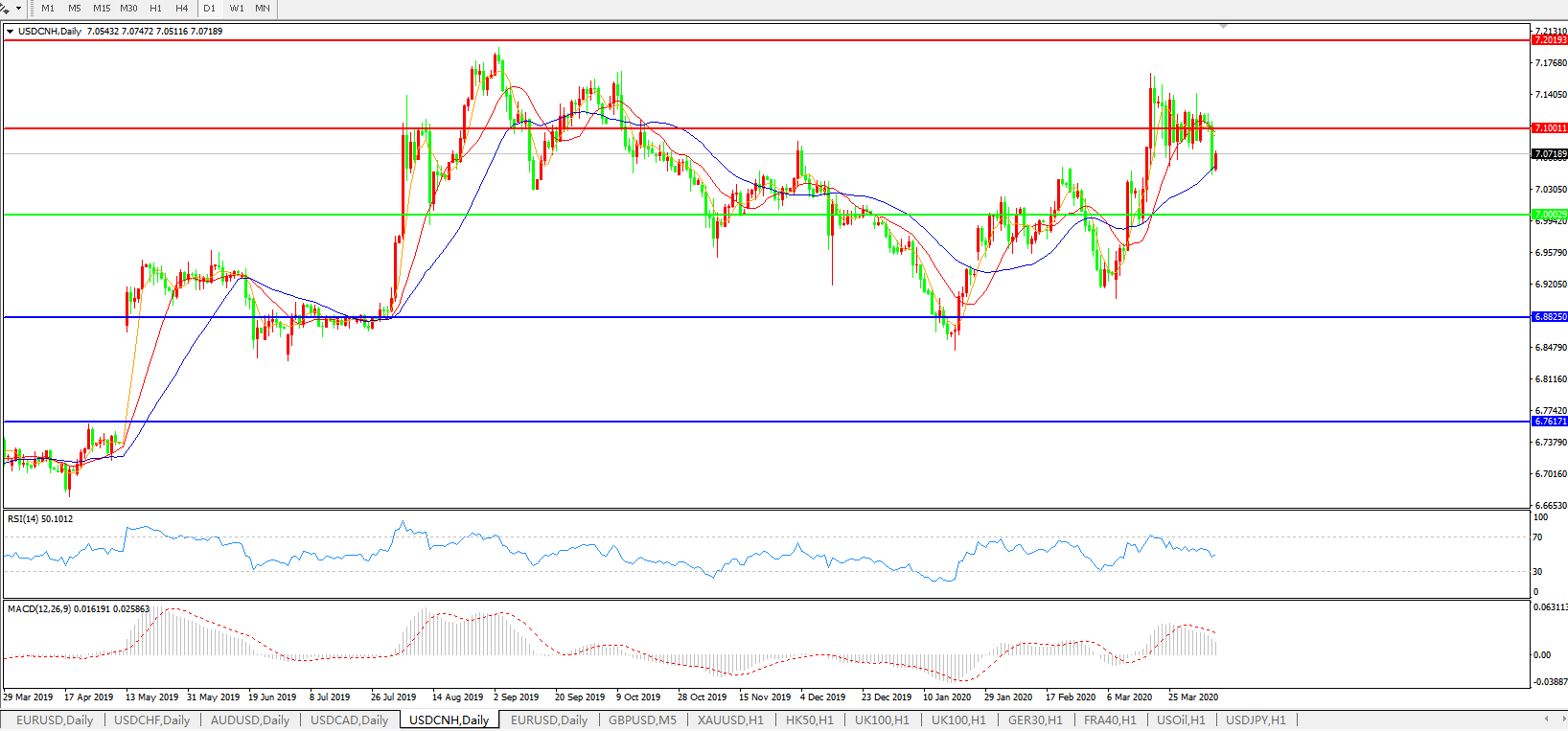 美元兑人民币USDCNH    日线图: