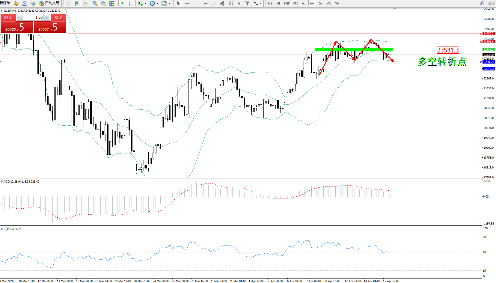 道琼斯指数415日(周三)收盘下跌445.40点,跌幅1.86%,报23504.35点。美股收跌,道指跌440点,投资者聚焦财报以判断疫情对企业盈利及经济的影响,并关注官方的重启经济计划。历史性疲软的美国经济数据和大银行提取更多坏账拨备的财报,令美国10年期国债收益率一度下跌14个基点至0.62%。美国国债收益率的急剧下降和美国股市的反弹帮助美元削减了涨幅;此前,经济增长担忧刺激的避险买盘推动美元大幅上涨。美联储褐皮书称美国经济活动急剧萎缩。美国3月零售销售锐减、4月纽约制造业指数降至历史最低水平。