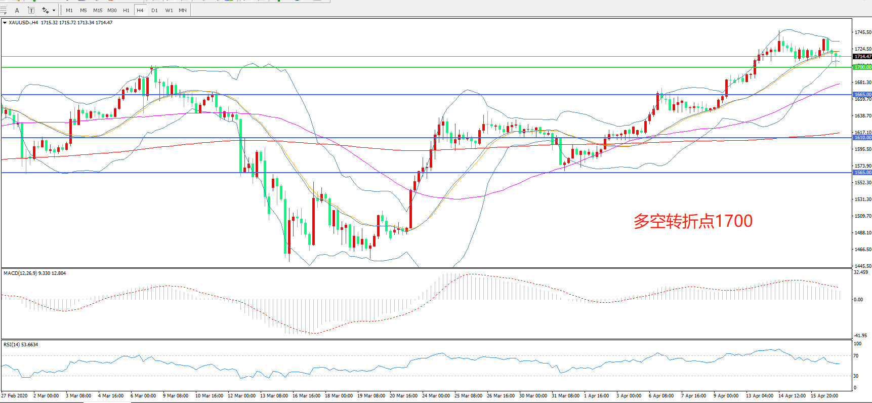 多空转折点:1700.00