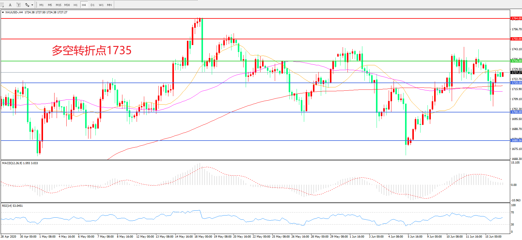 交易策略:在1735.00之下看跌,目标1720.00 1700.00