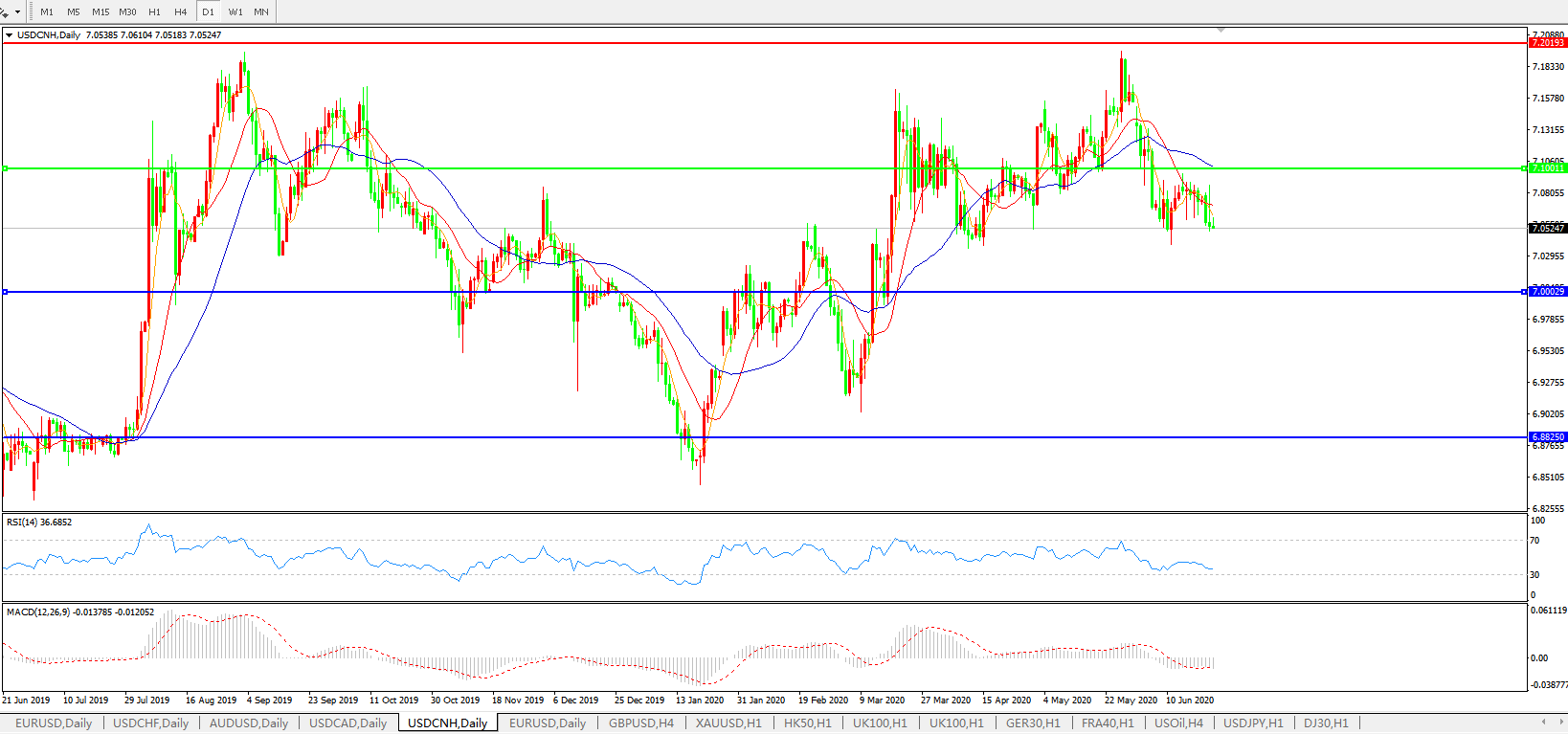 美元兑人民币USDCNH 日线图: