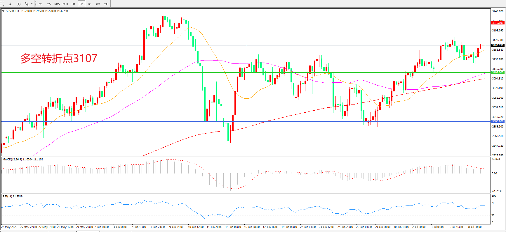 多空转折点:3107.00