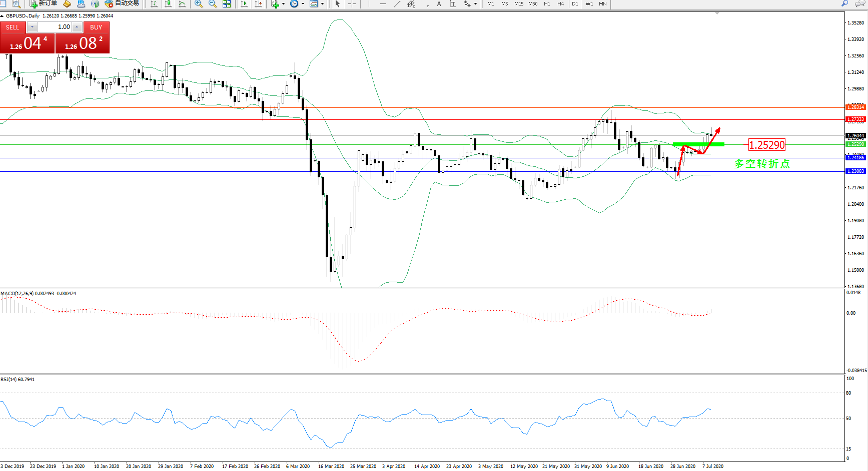 交易策略:1.25290上方看涨,目标1.273331.28314