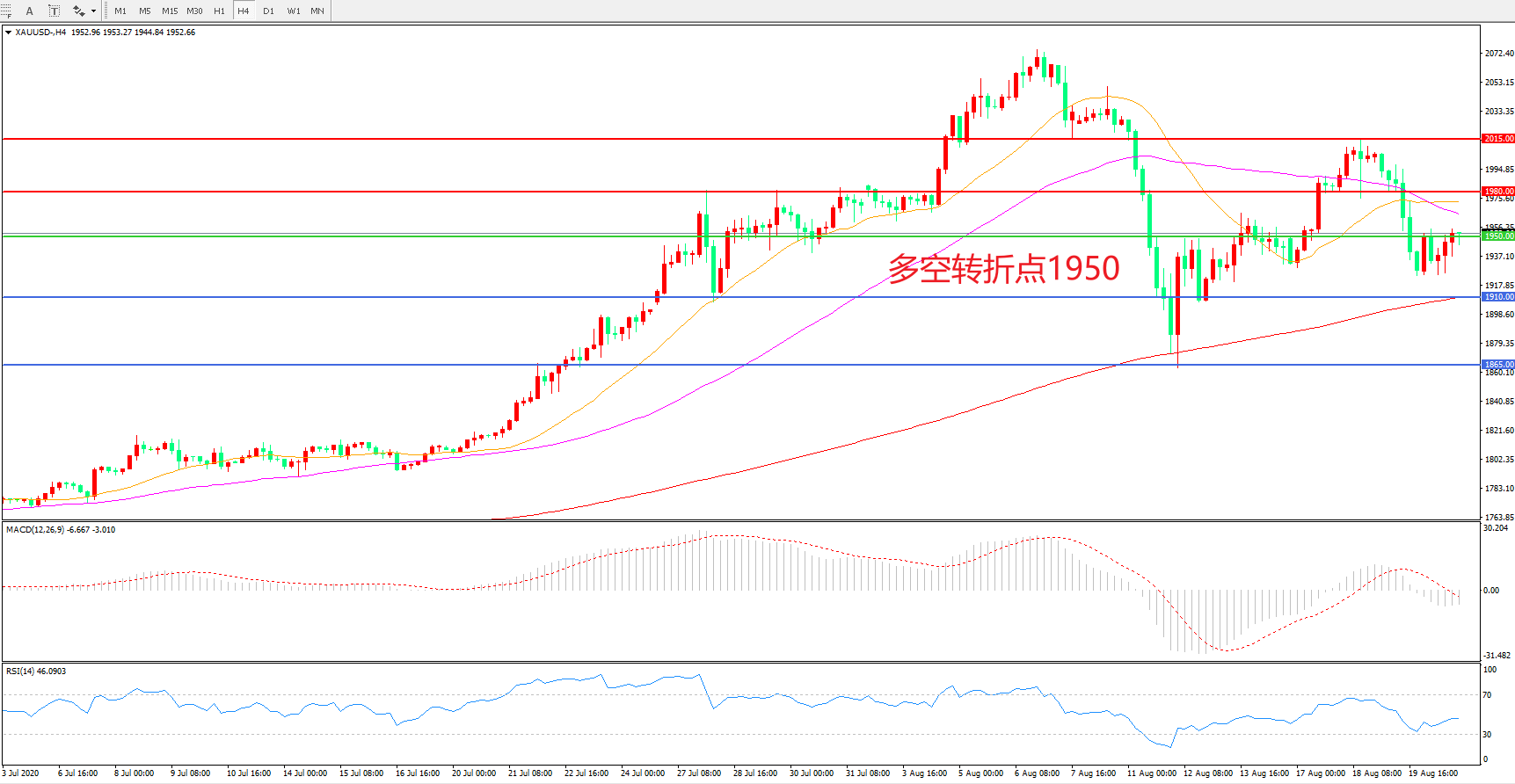 多空转折点:1950.00