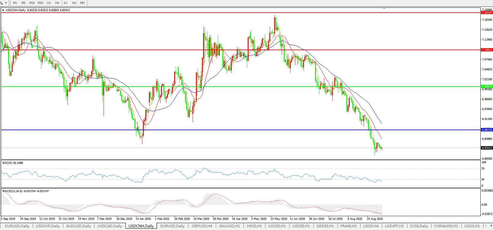 美元兑人民币USDCNH    日线图: