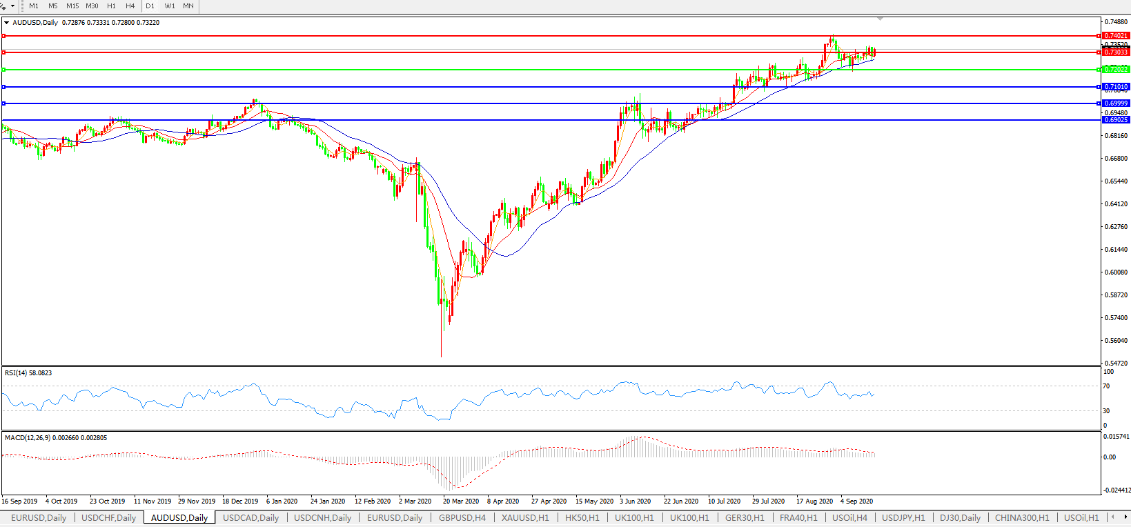交易策略:0.7200上方看涨,目标0.7300、0.7400