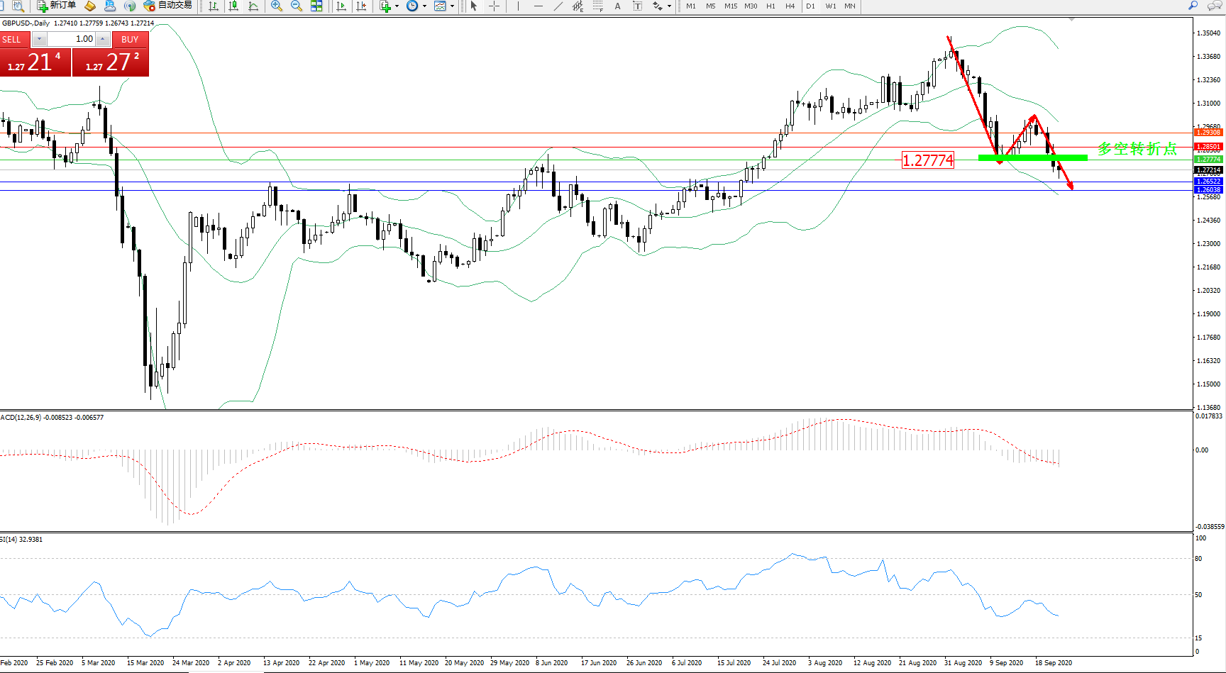 交易策略:1.27774下方看跌,目标1.26522、1.26038