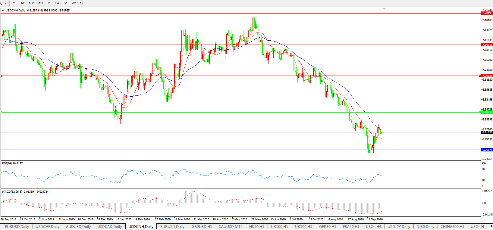 美元兑人民币USDCNH    日线图: