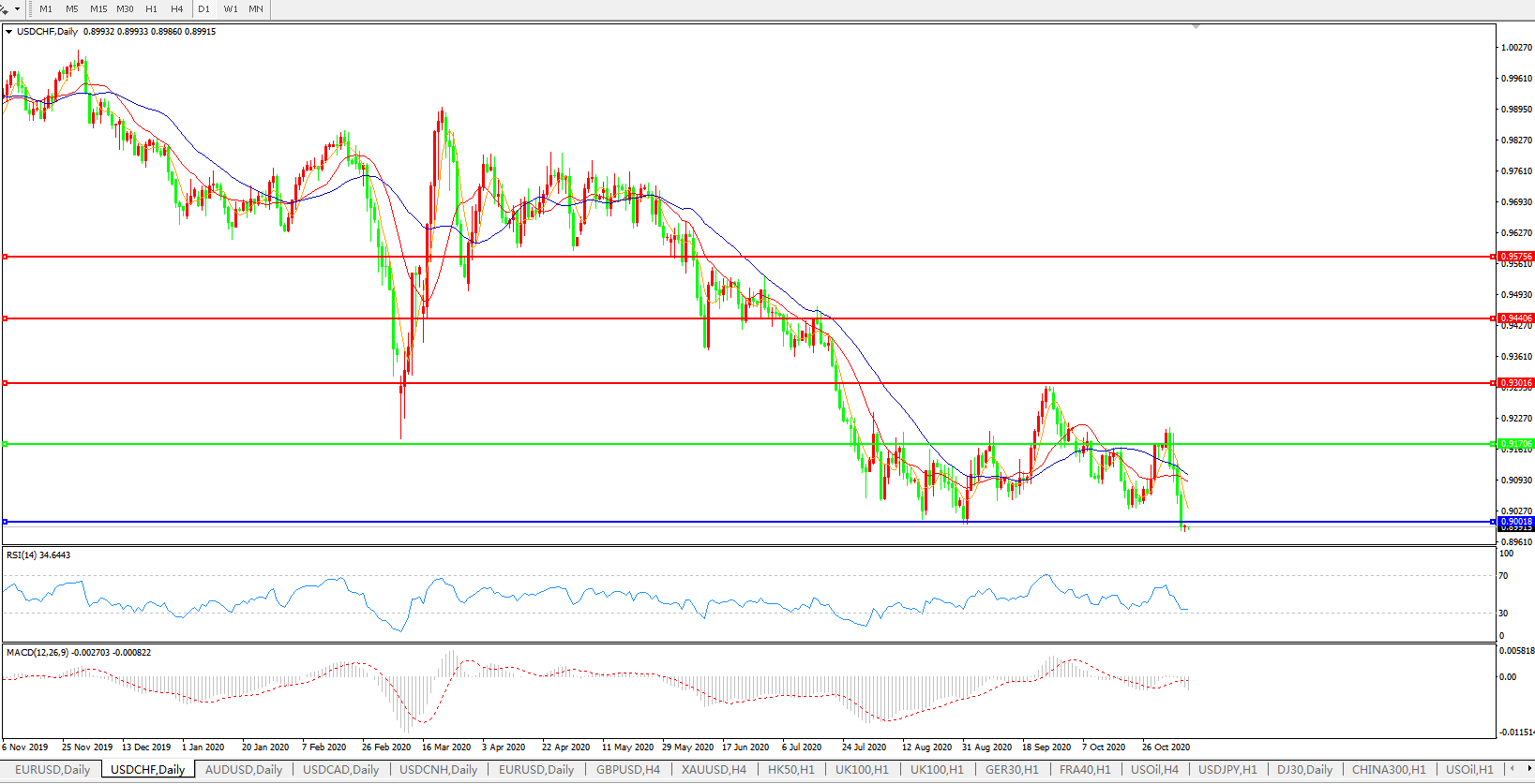 美元兑瑞郎USDCHF    日线图: