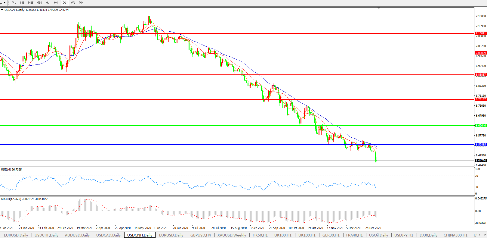 美元兑人民币USDCNH    日线图: