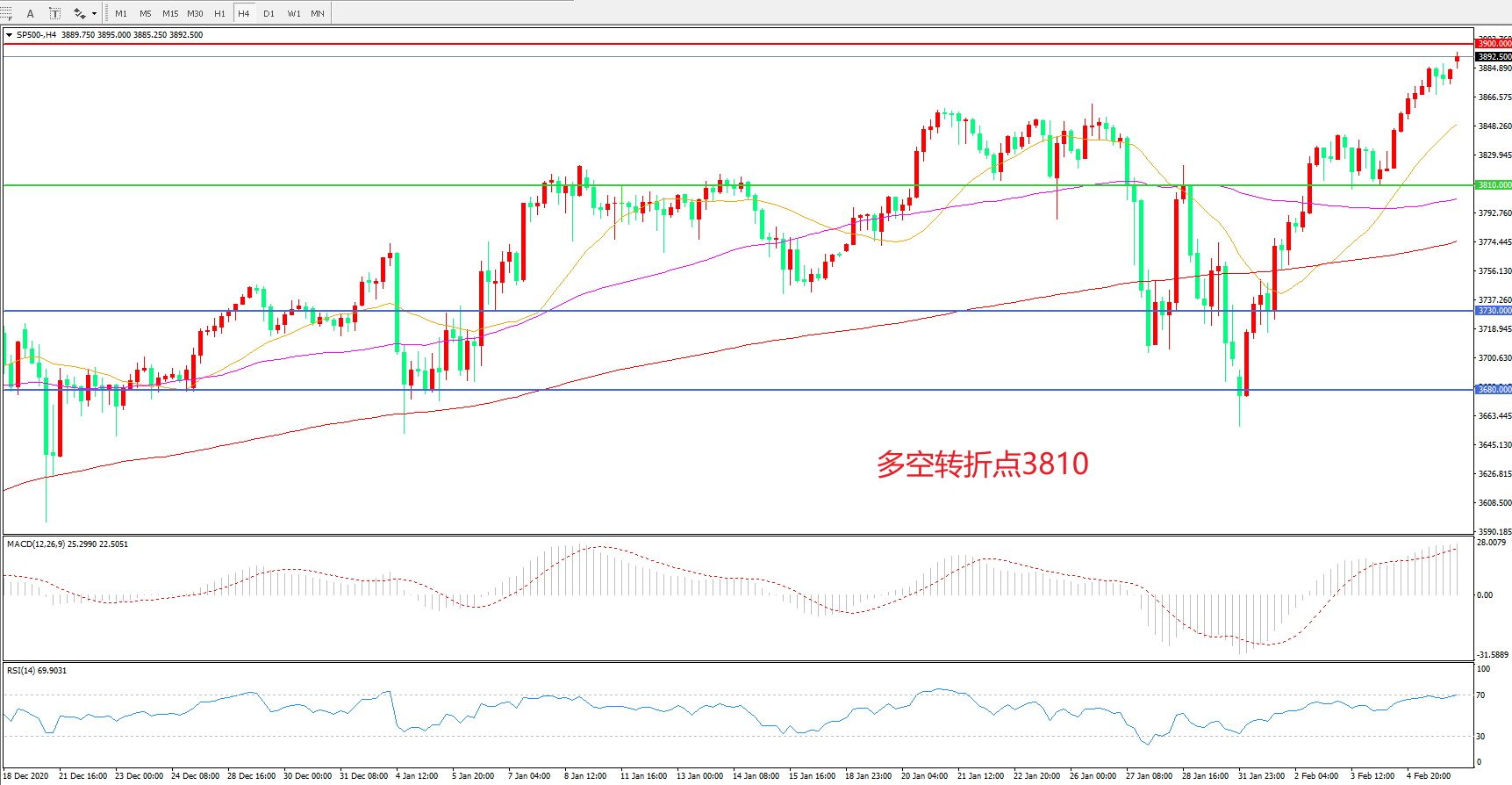 交易策略:在3810.00之上看涨,目标3900.00    4010.00