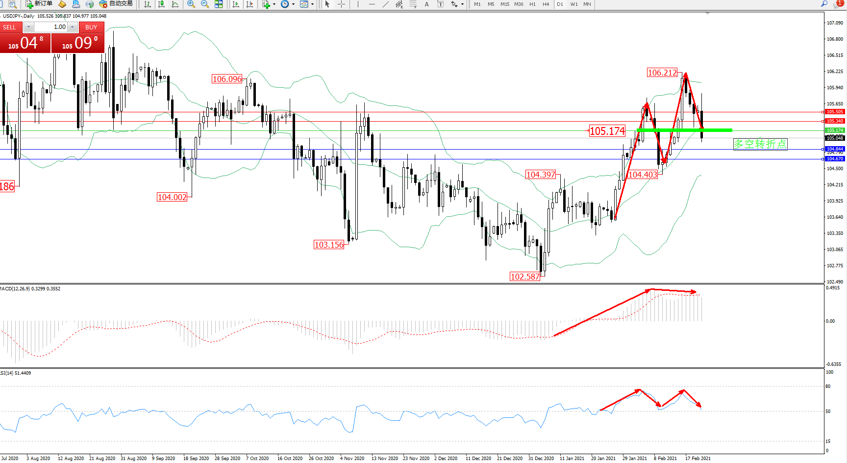 多空转折点:105.174