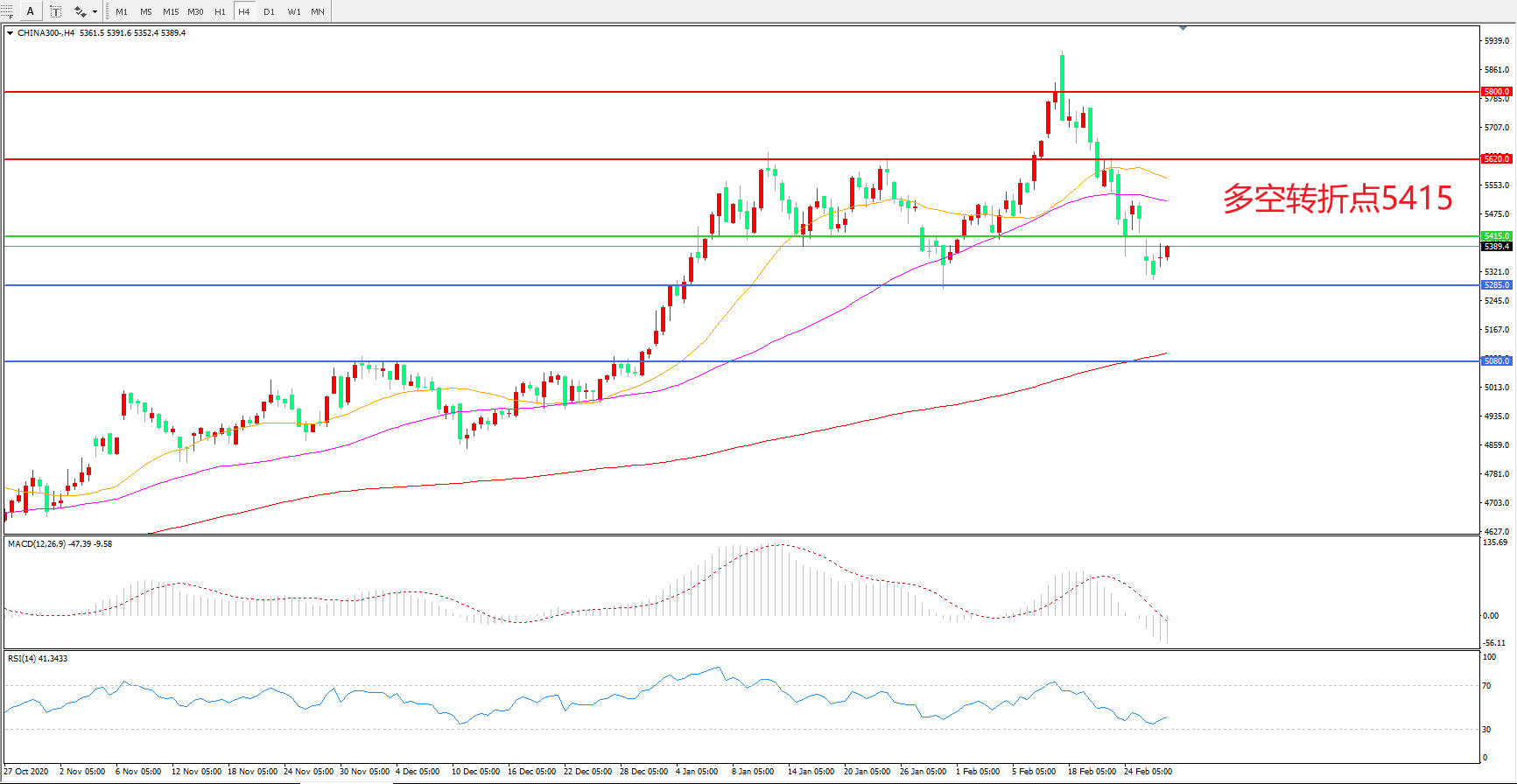 交易策略:在5415.00之下看跌,目标5285.00    5080.00