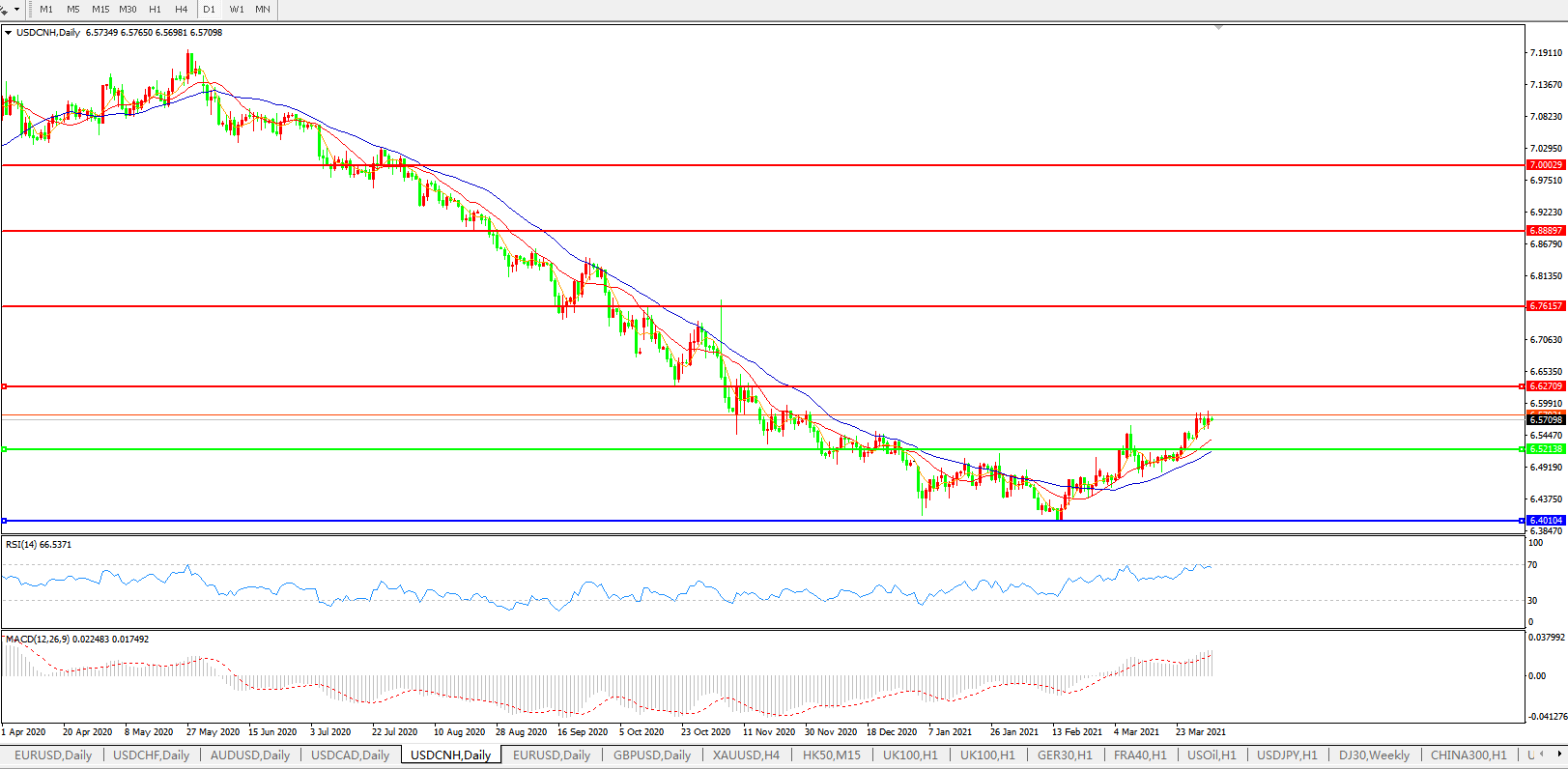 交易策略: 在6.5200之上,看涨,目标价位为6.6300,然后为6.7615。
