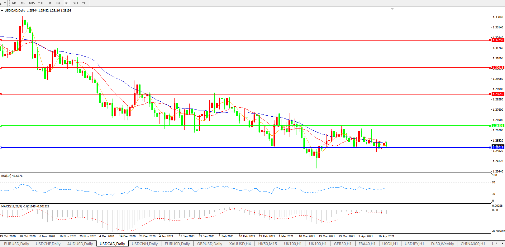 美元兑加元USDCAD    日线图:
