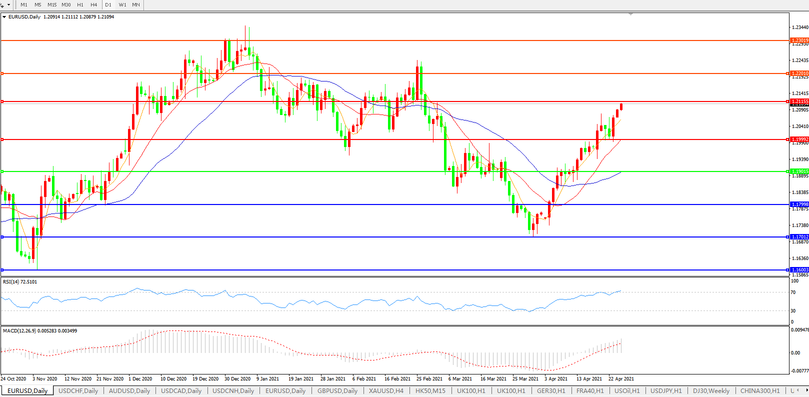 欧元兑美元EURUSD   日线图: