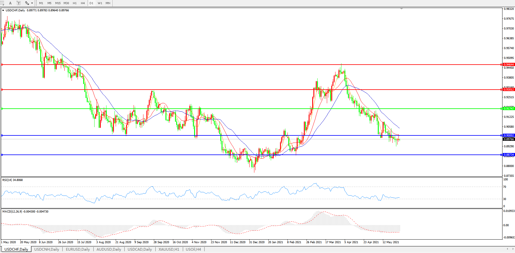 美元兑瑞郎USDCHF 日线图: