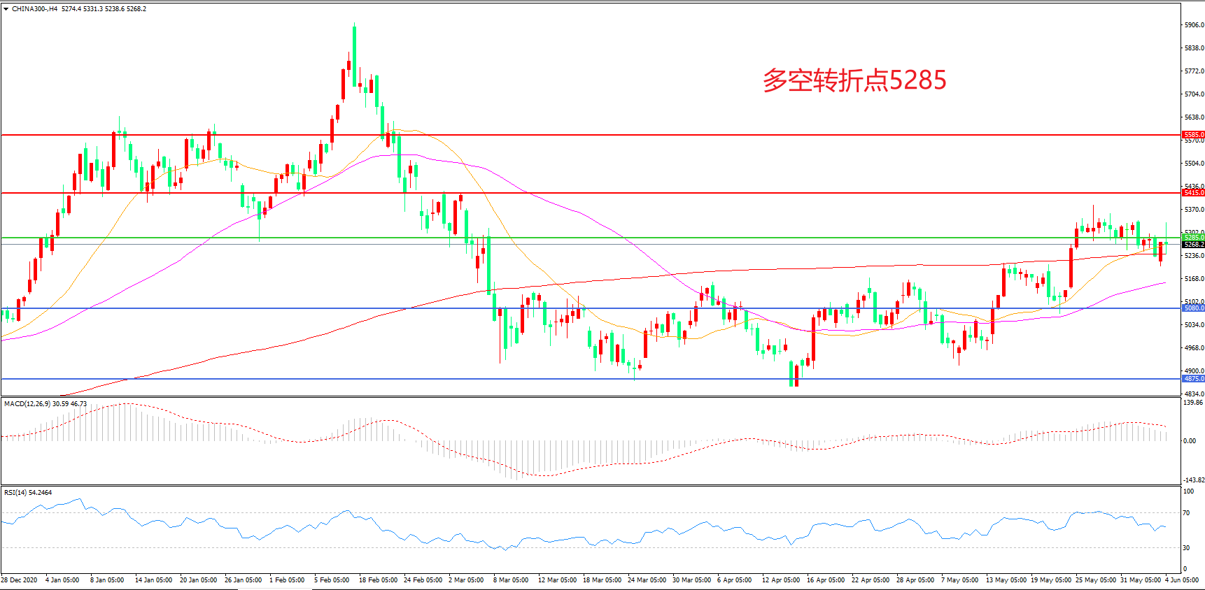 多空转折点:5285.00