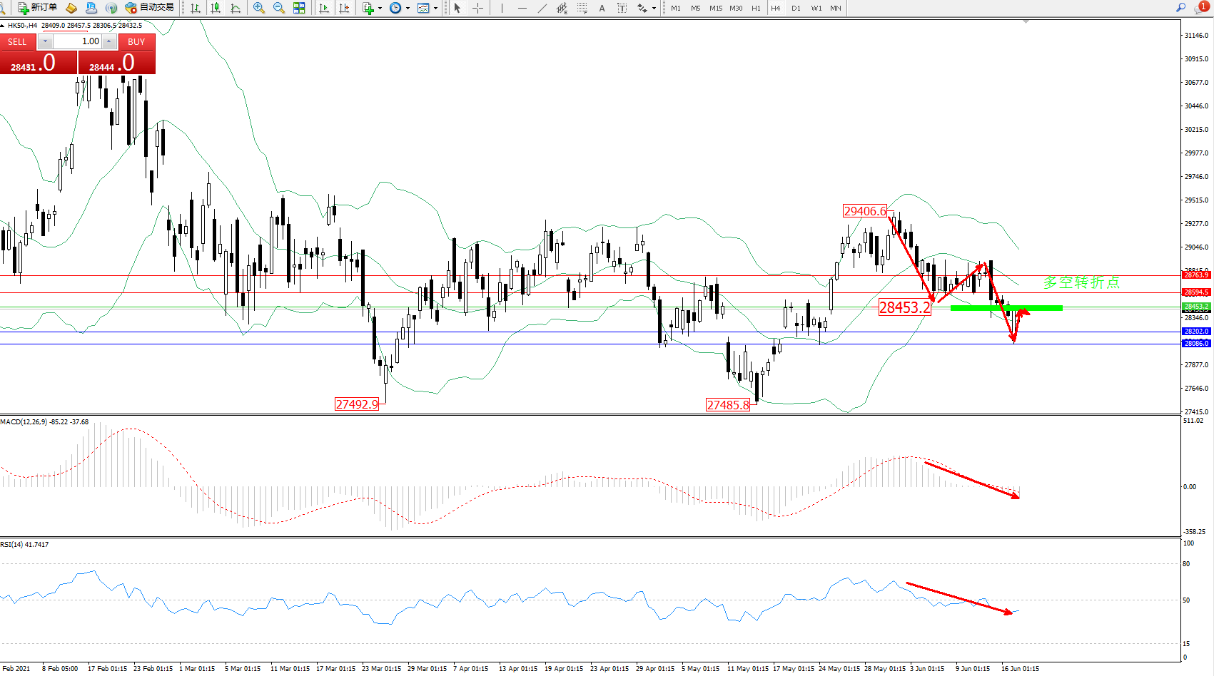 技术点评:空头动力延续布林带指标通道中下轨区间持续震荡下行,低位跳空布林带指标下轨后急速回升,处于下轨内侧维持震荡,但下行趋势已然形成,布林带指标呈下行趋势通道走势良好,MACD指标处于0轴线附近弱势整理后开始不断向下移动中,RSI指标处于50均衡线下方空头区域持续震荡下行;