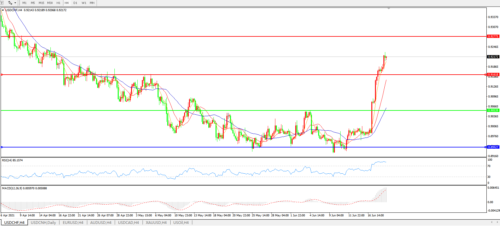 美元兑瑞郎USDCHF 4小时图: