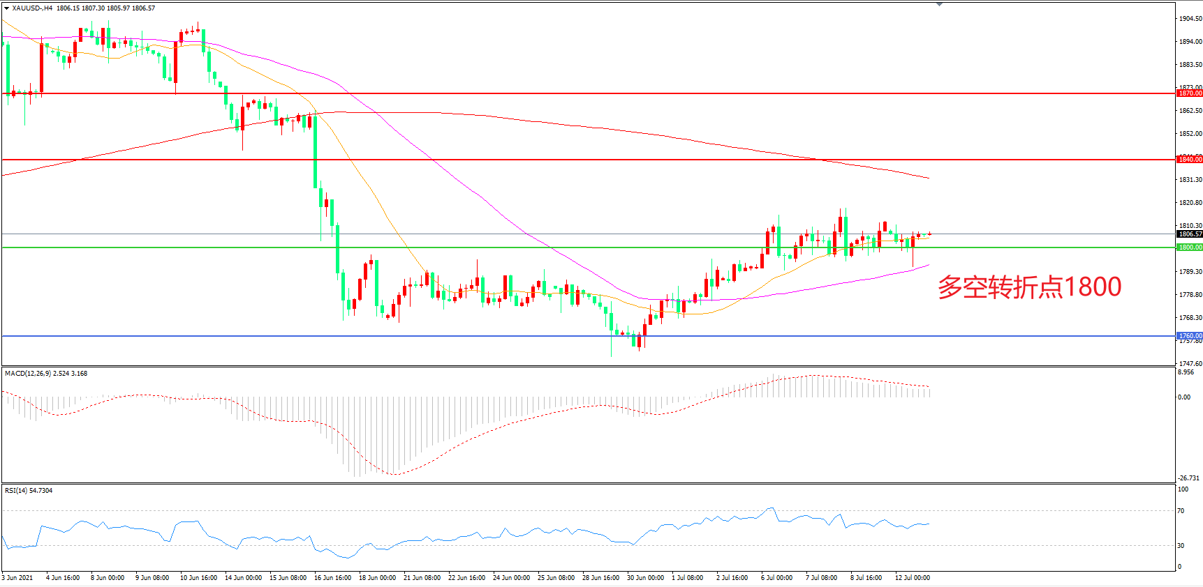 交易策略: 在1800.00之上看涨,目标1840.00 1870.00