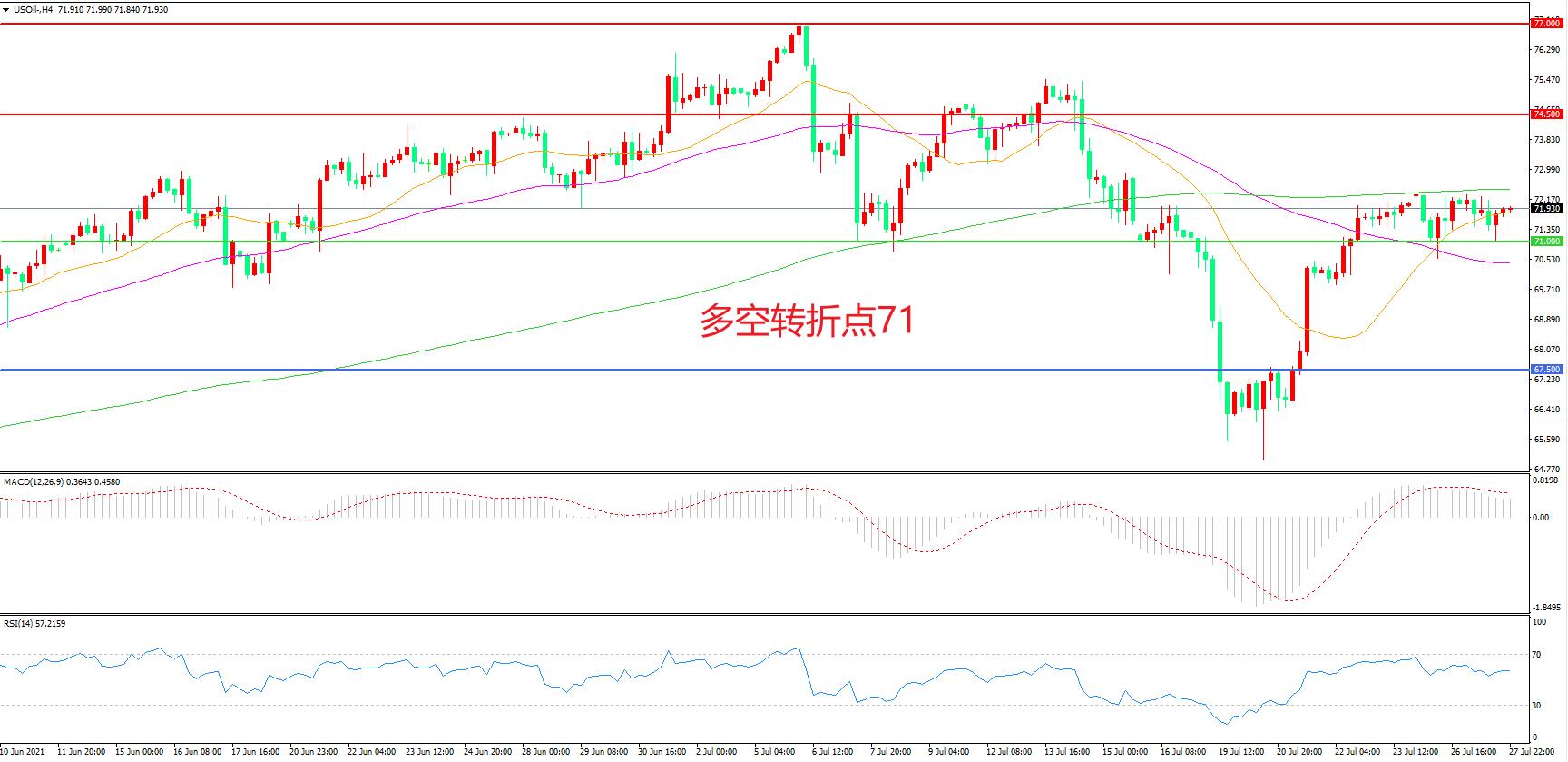 多空转折点:71.00
