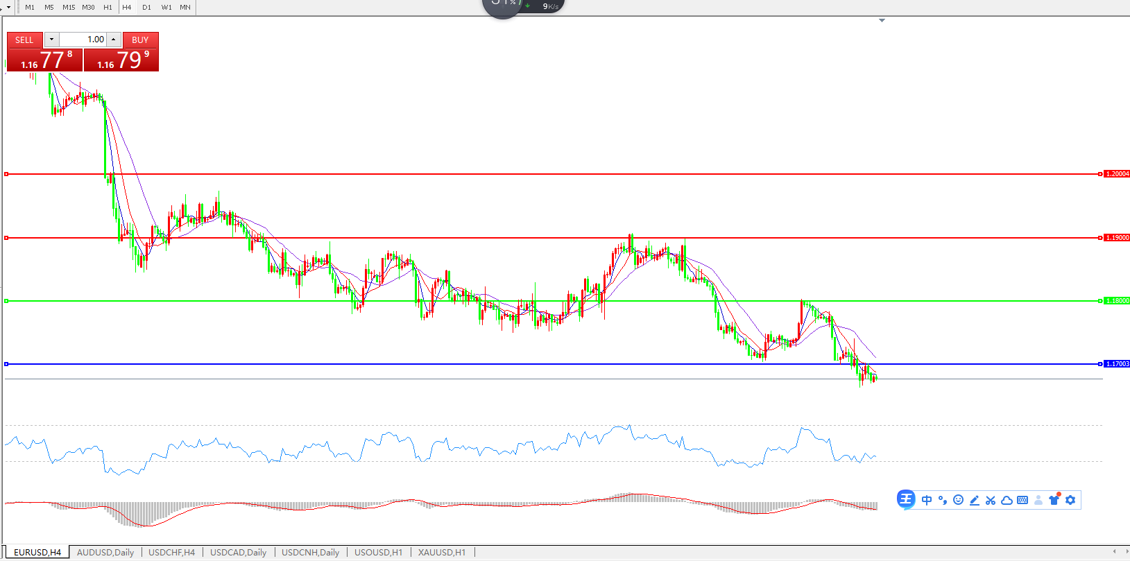 欧元兑美元EURUSD   4小时图: