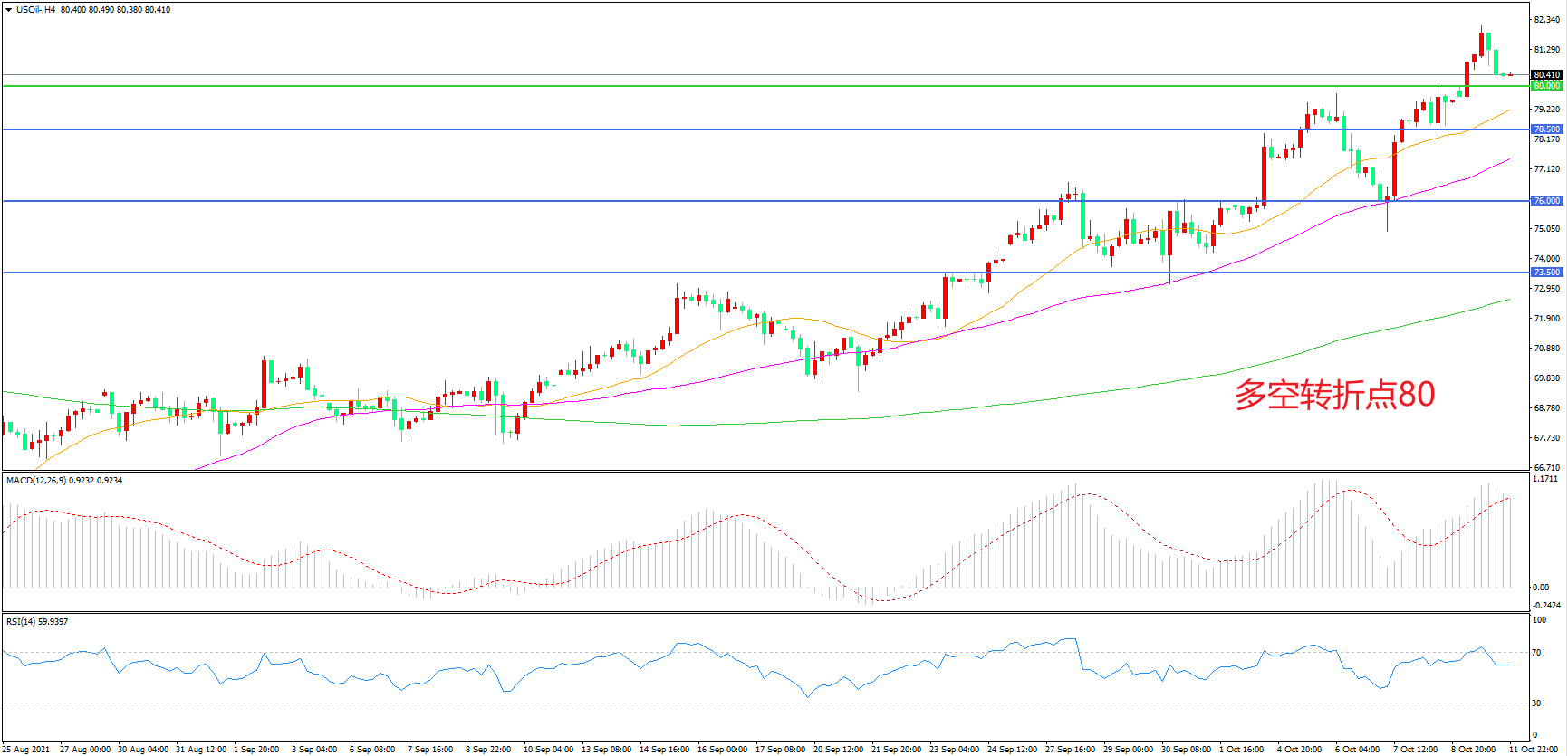 多空转折点:80.00