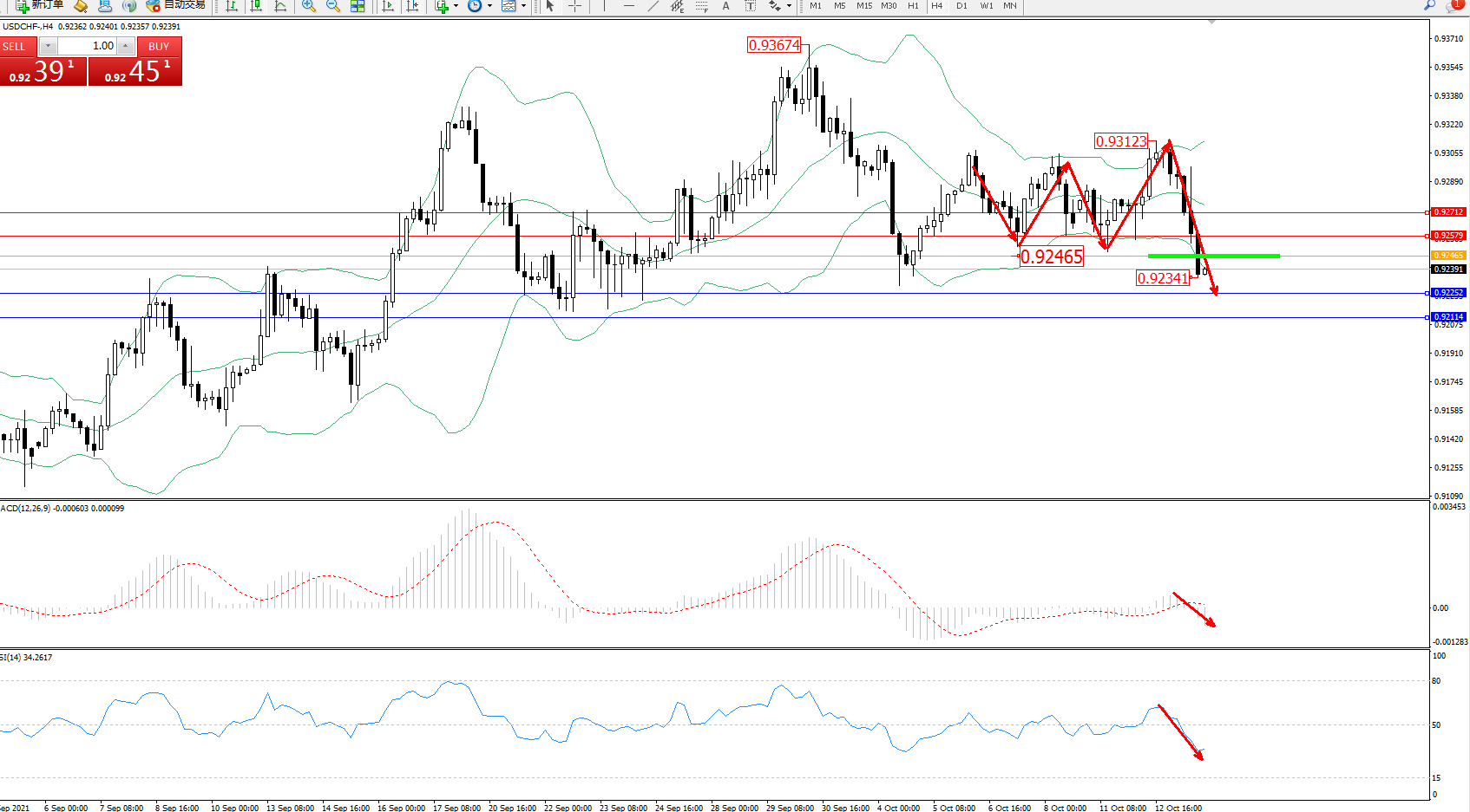 支撑位:0.92252、0.92114