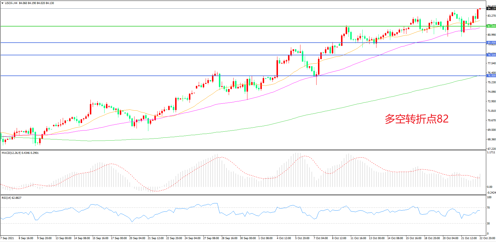 多空转折点:82.00