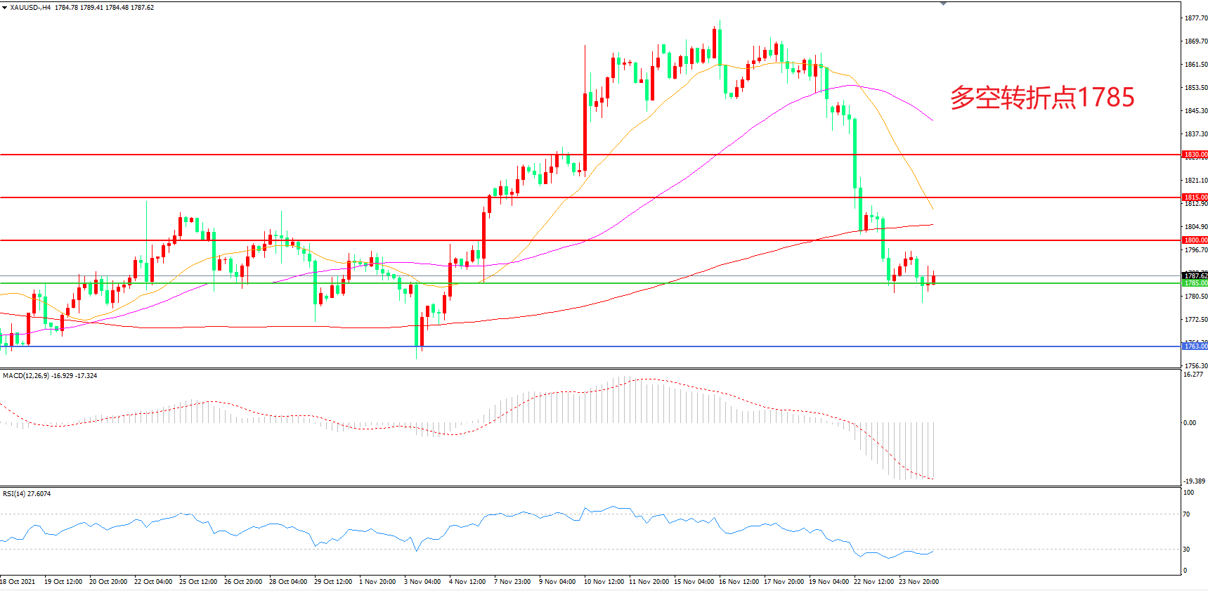 交易策略:在1785.00之下看跌,目标1763.00 1750.00