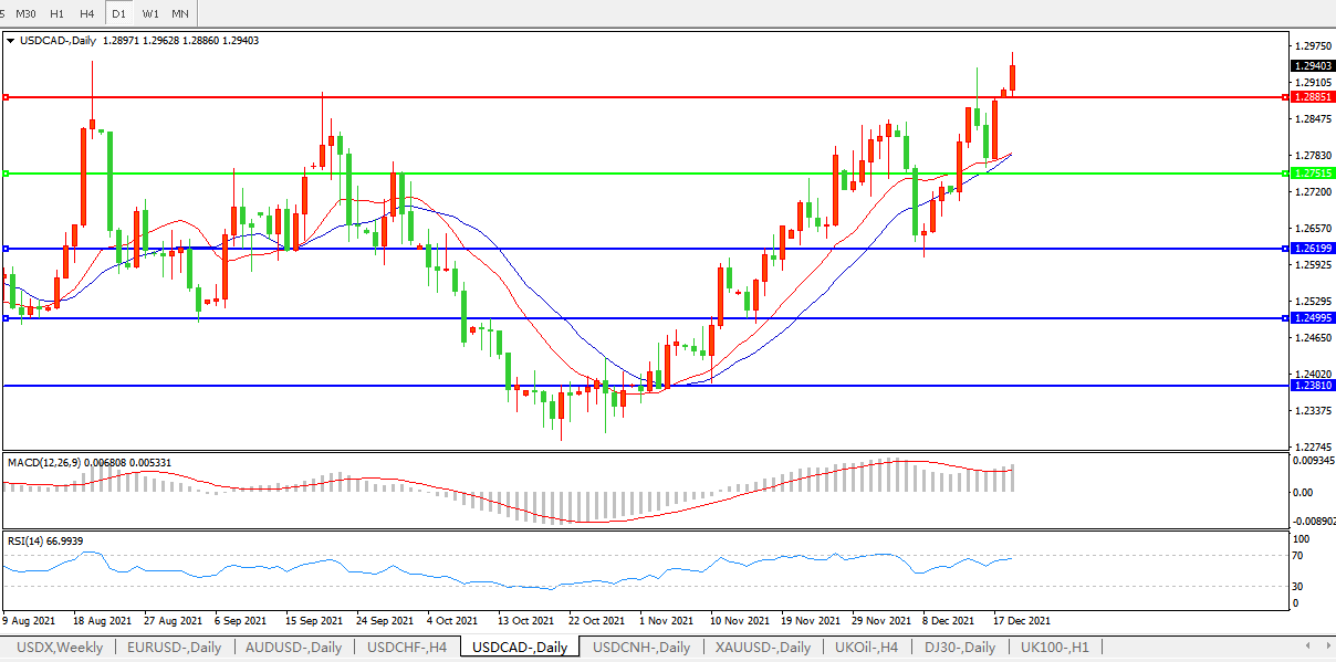 美元兑加元USDCAD 日线图: