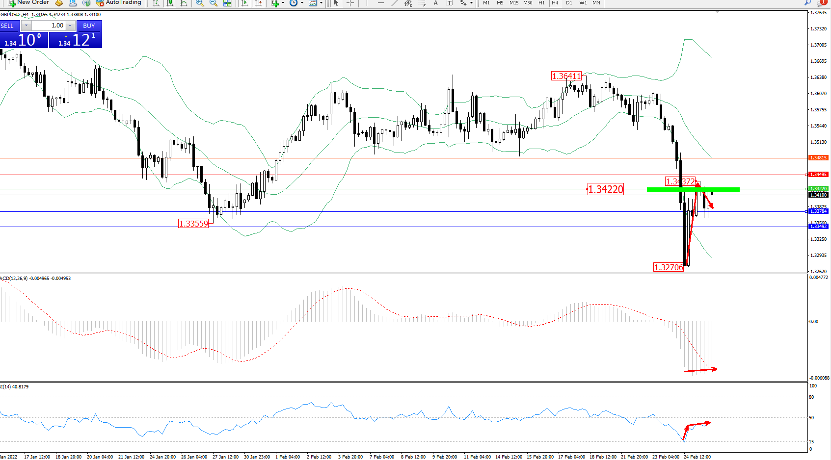交易策略:1.34220下方看跌,目标1.34495、1.34815