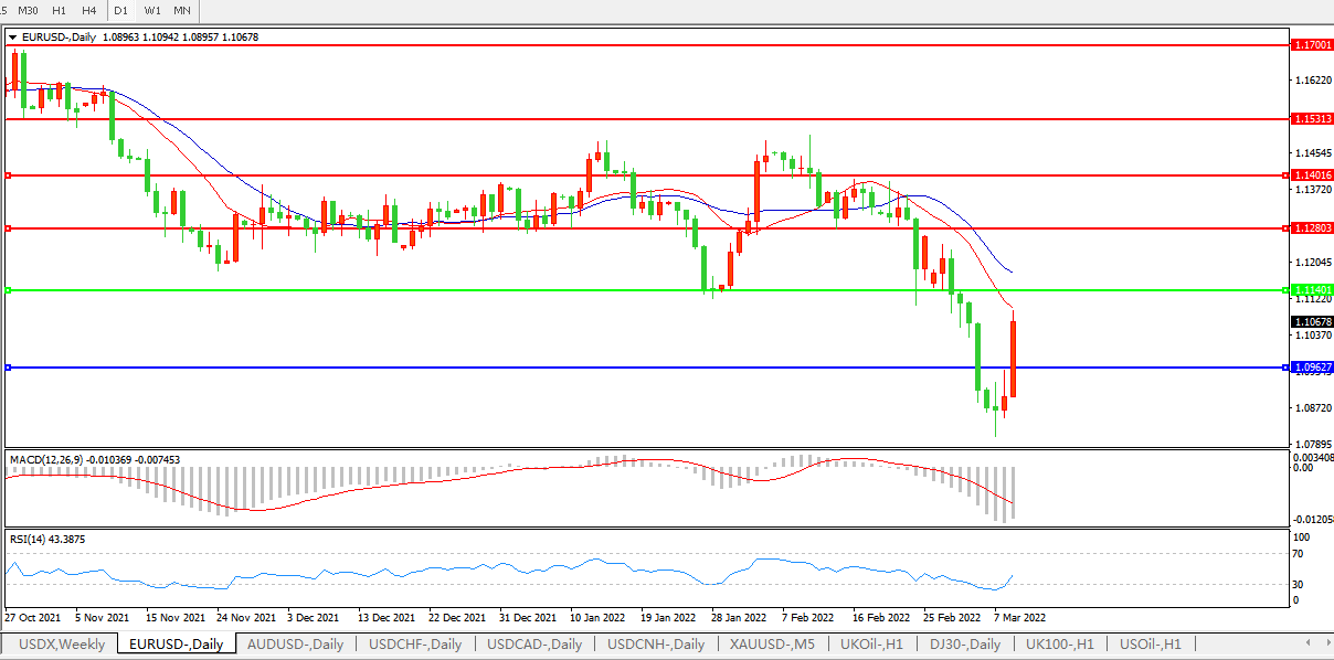 欧元兑美元EURUSD 日线图: