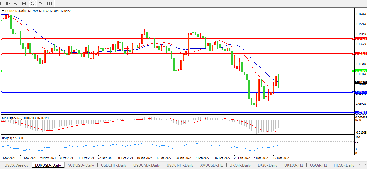 欧元走弱,投资者评估乌克兰-俄罗斯冲突的事态发展,包括俄罗斯支付两只美元主权债利息的消息。欧元兑美元下跌0.38%,至1.1049美元,但本周上涨1.3%,创2月第一周以来的最大单周百分比涨幅,当时欧洲央行行长拉加德首次暗示欧元区将在2022年加息。