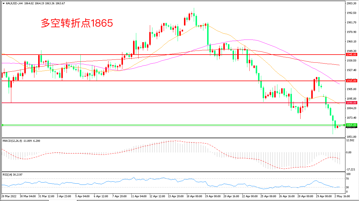 交易策略:在1865.00之下看跌,目标1840.00      1810.00