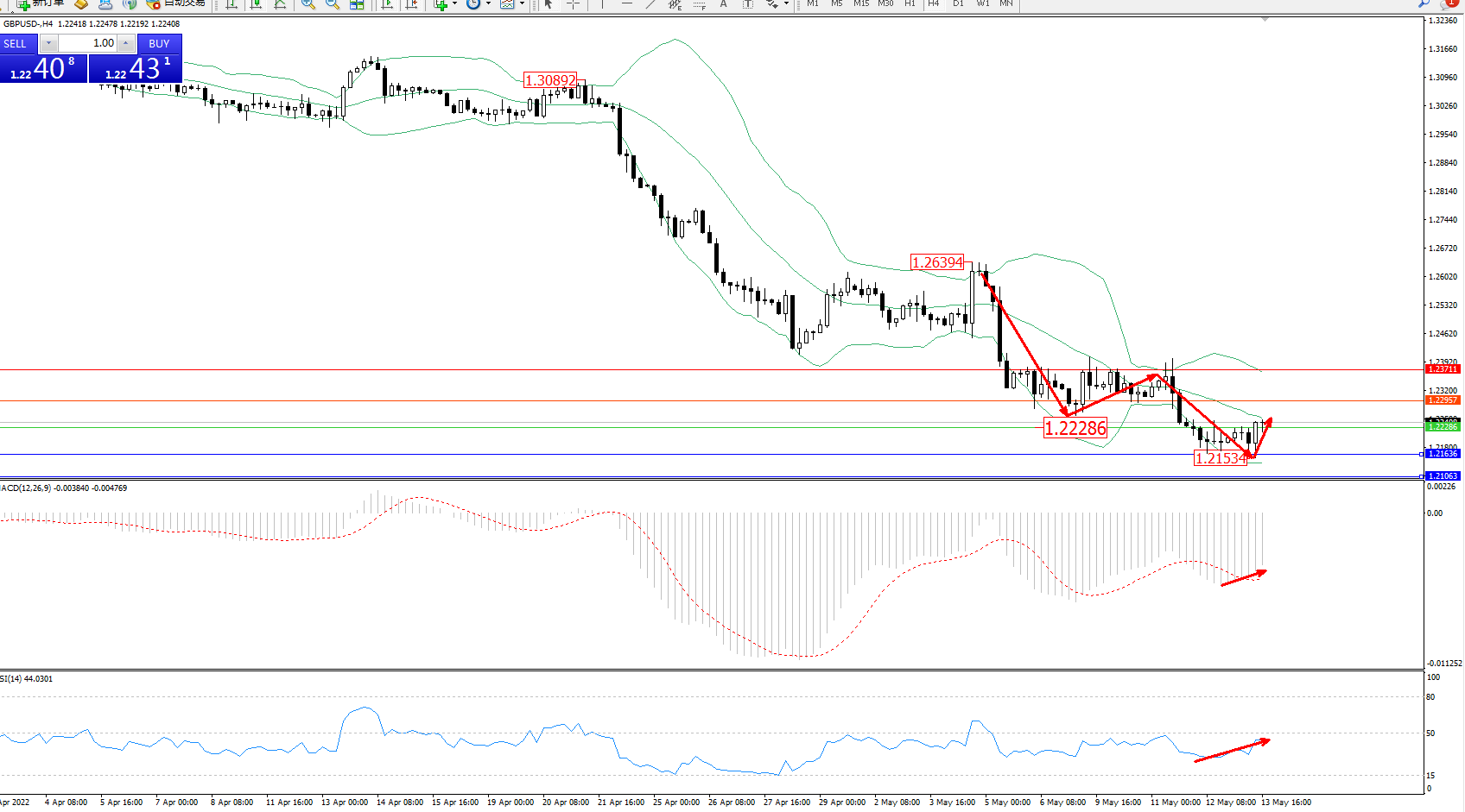交易策略:1.22286上方看涨,目标1.22957、1.23711