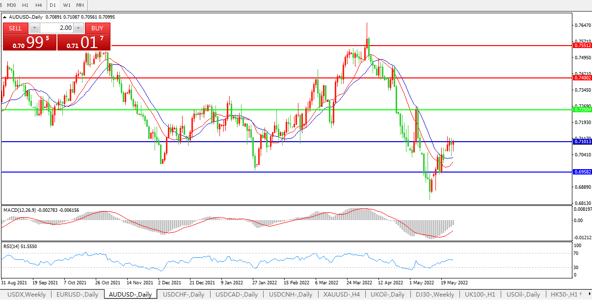 AUDUSD  NZDUSD  美元指数避险吸力下降,澳元兑美元持续反弹