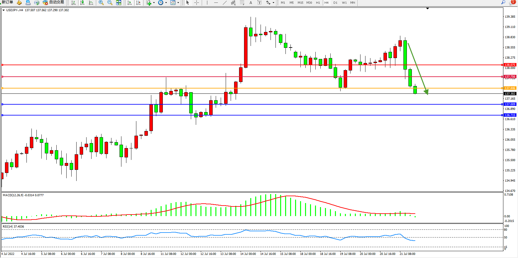 美元兑日圆维持137.302附近震荡,日本央行将基准利率维持在历史低点-0.1%,将10年期国债收益率目标维持在0%附近,符合市场预期。
