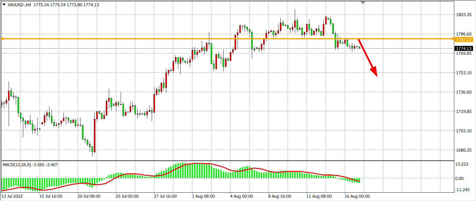 交易策略:在1782.00之下看跌,目标1770.00 1755.00