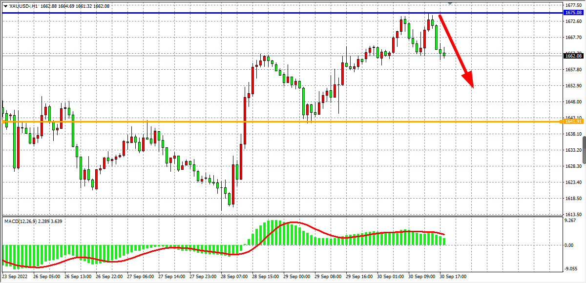 黄金:1675阻力形成