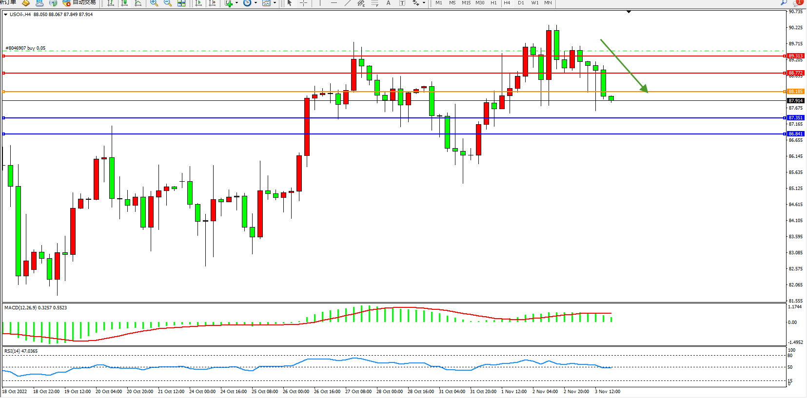 原油USOil——4小时K线图显示: