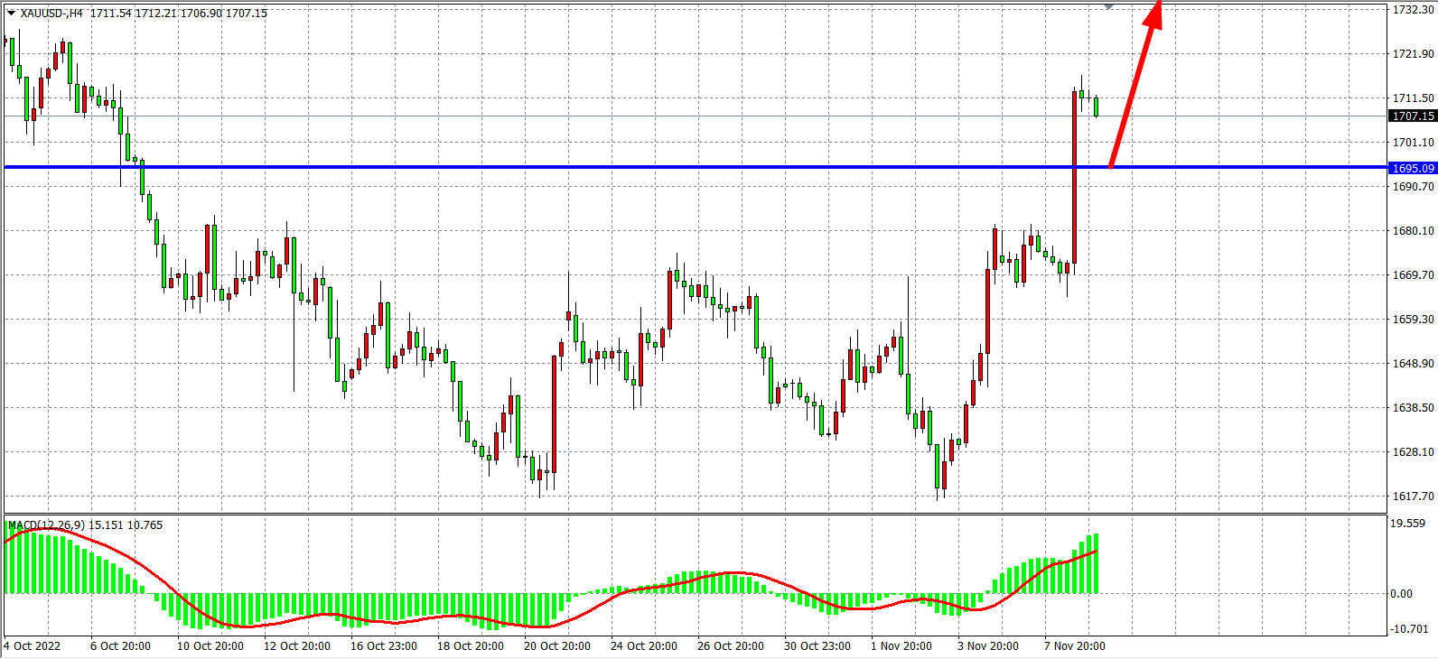周二(11月8日)在迎接美国中期选举和10月CPI数据之际,美元指数继续下跌失守110,美国国债收益率从高位回落,10年期美债收益率从4.24%回落至4.12%,现货黄金大幅走高突破1710关口,一度较日内低点拉升逾52美元,接连升破1680至1710美元的四道整数关口,最终收涨2.22%。根据最新民调显示,以拜登为首的民主党选票并不乐观,可能会迫使美联储放软来抵消对经济造成的损害,市场对于美联储加息预期有所走软,日内重点关注CPI通胀数据。