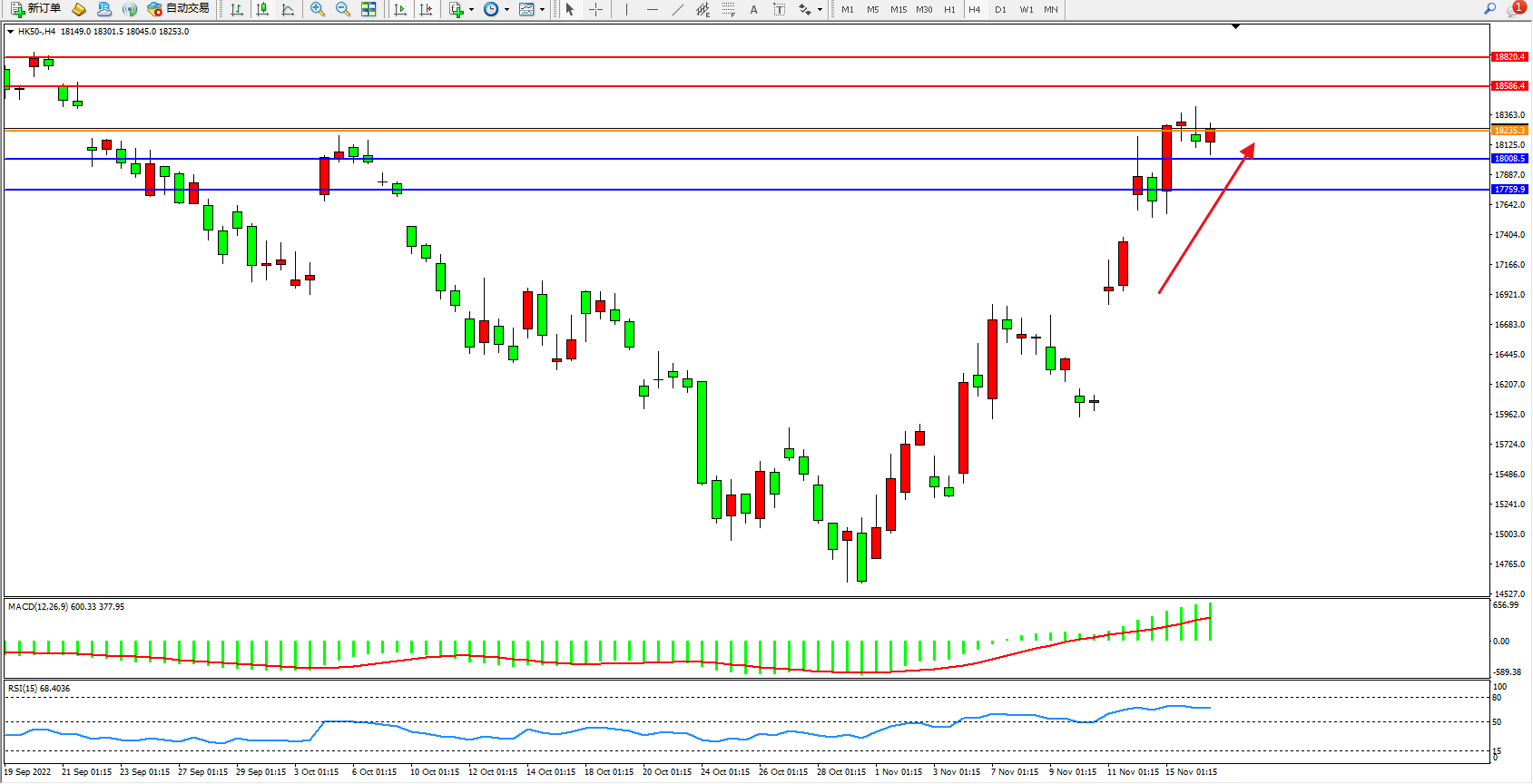 恒指HK50 4小时图