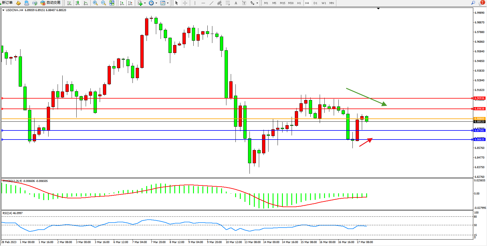 备选策略:6.88800上方看涨,目标6.89838 6.90936