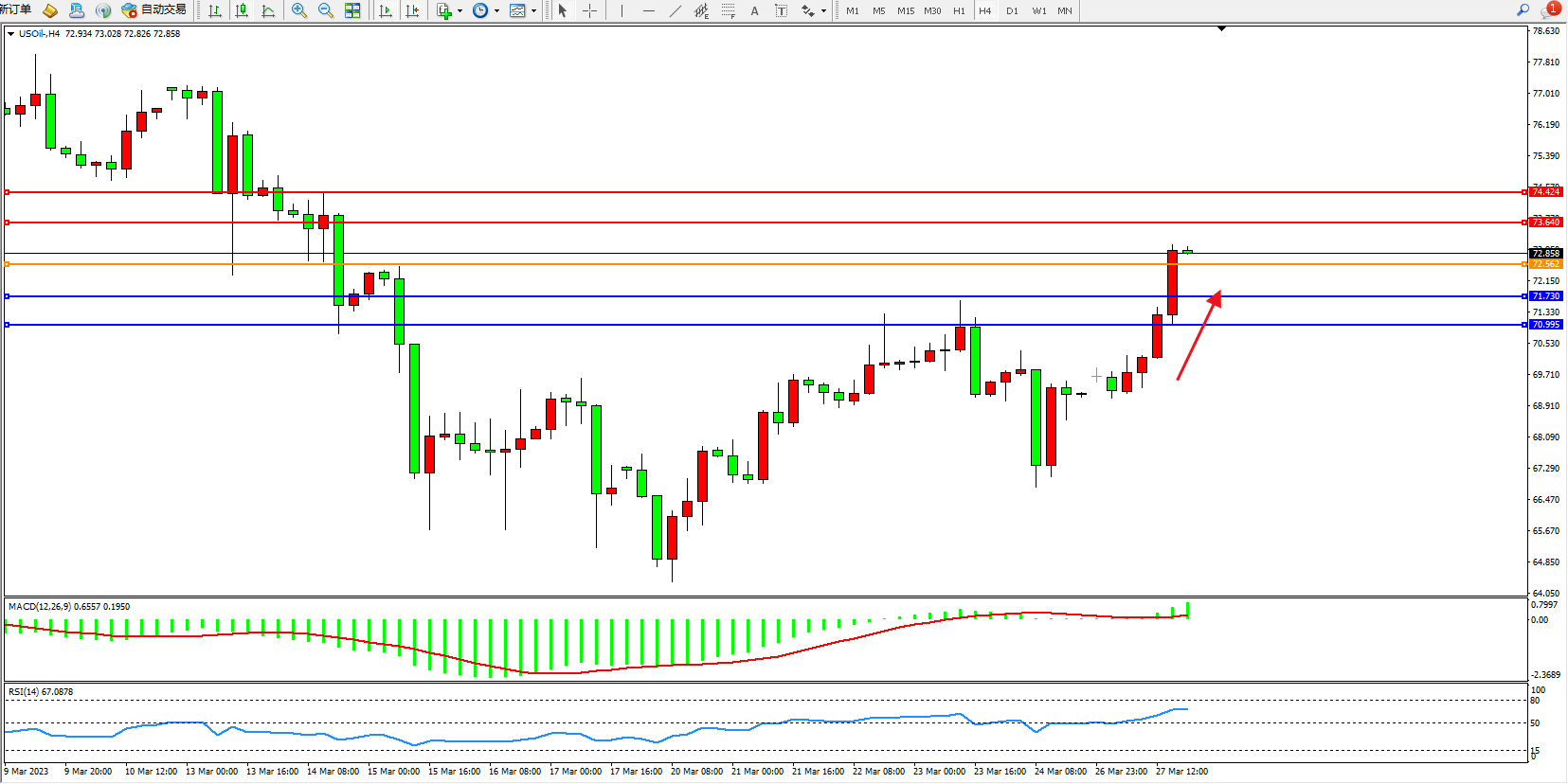 阻力位:73.640  74.424