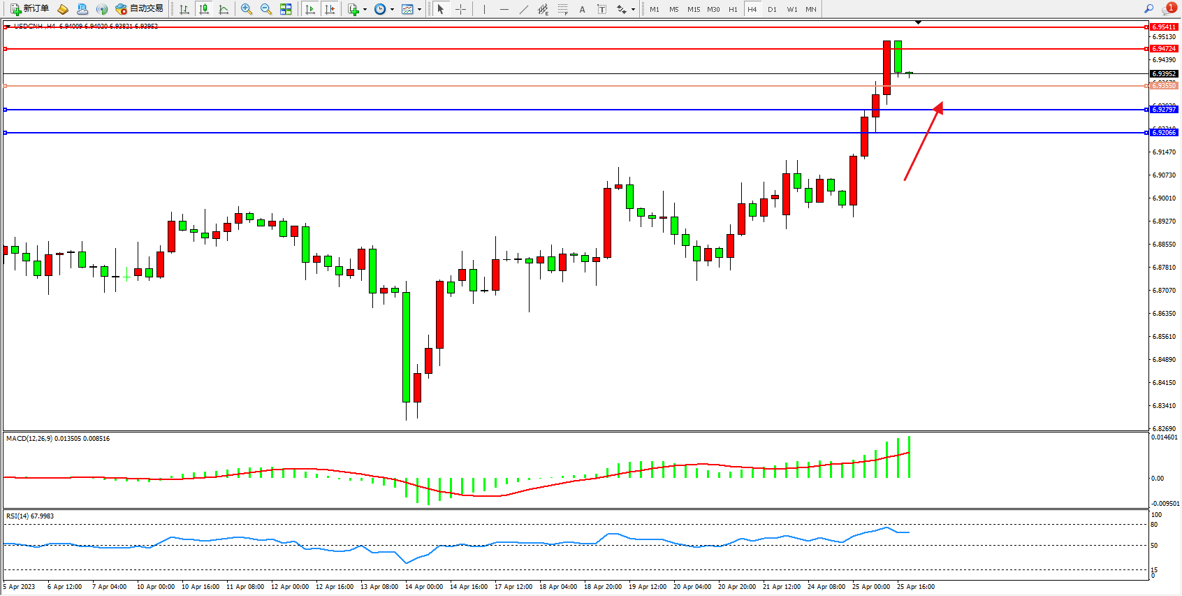 交易策略:6.93550上方看涨,目标6.94724 6.95411