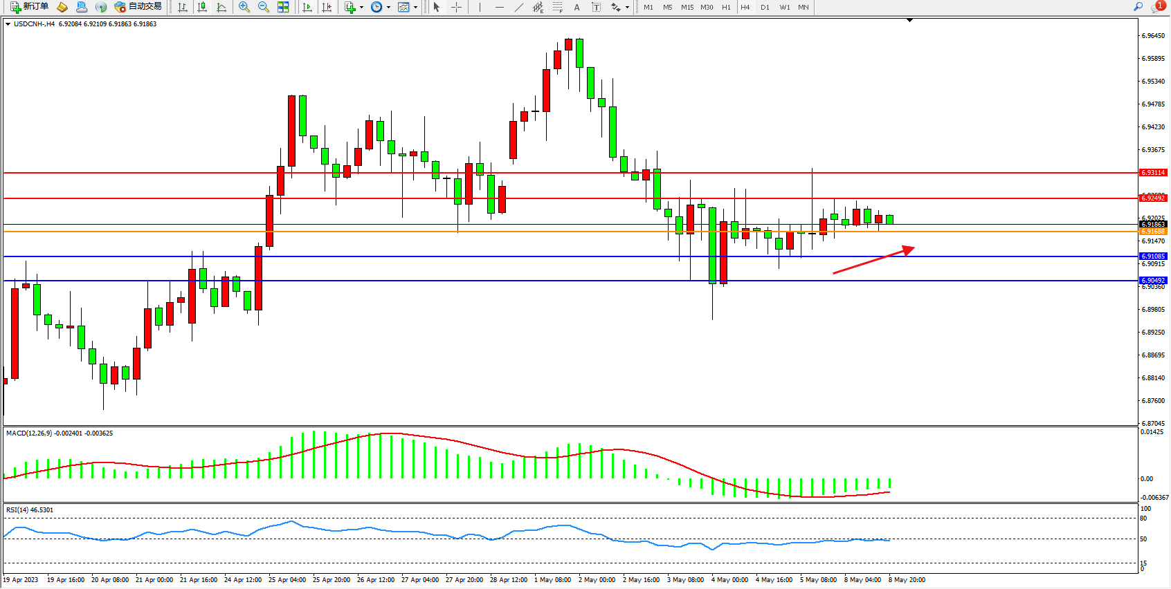 交易策略:6.91688上方看涨,目标6.92492 6.93114