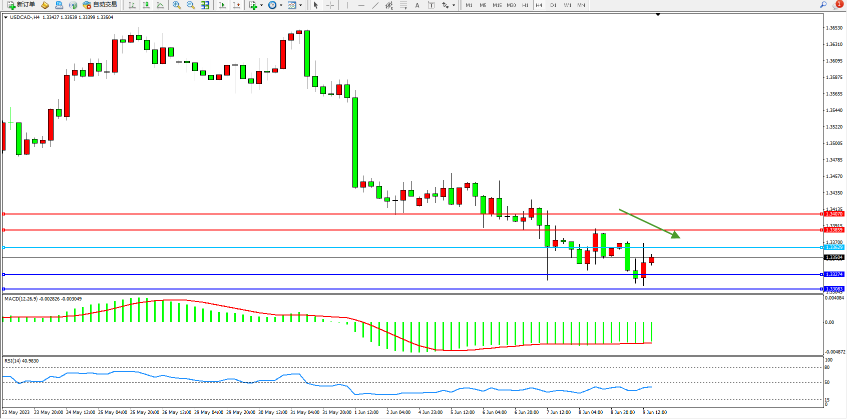 美元兑加元维持1.33629附近震荡,加拿大5月就业人数变动 -1.73万人,预期 2.13万人,前值 4.14万人,为2022年9月以来首次录得减少,创2022年8月以来最大降幅。