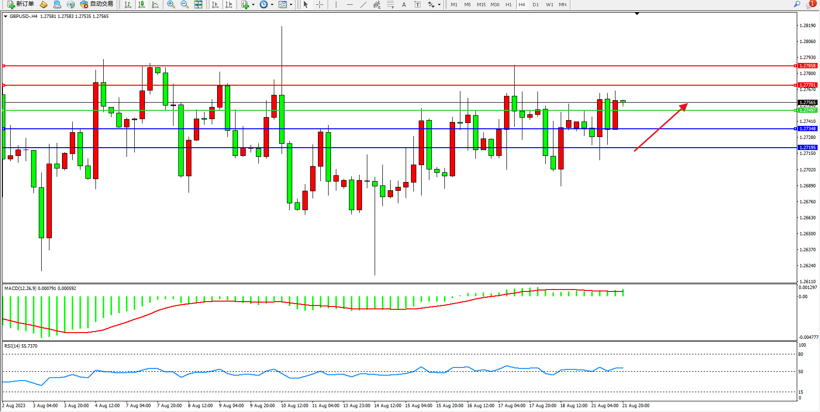 英镑美元GBPUSD ——4小时K线图显示: